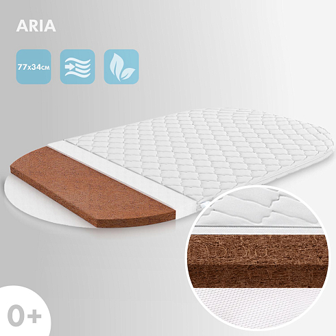Детский матрас в коляску Nuovita Aria 77х34 см. Наполнитель матраса кокос 2 см + спанбонд 1 см. Максимальная нагрузка на матрас 10 кг. Жесткость матраса "выше среднего", чехол матраса съемный.