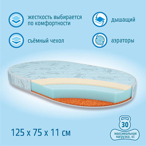 Детский овальный матрас Nuovita Buona 125х75х11 см оптом