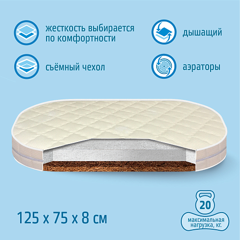Детский овальный матрас Nuovita Fascino 125х75х8 см оптом
