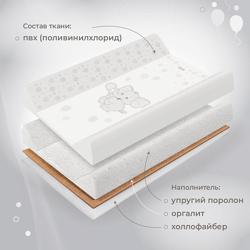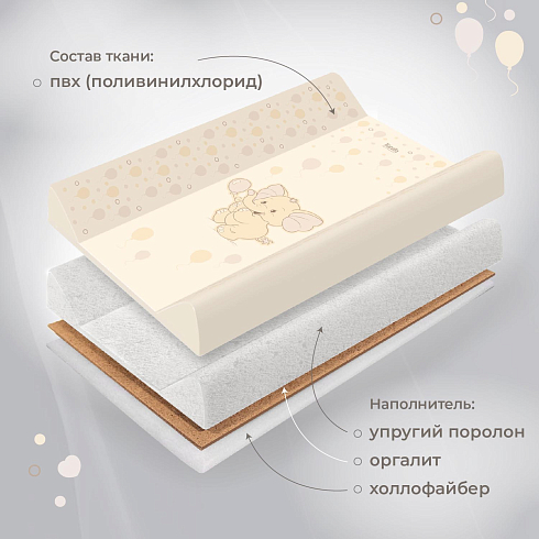 Размер изделия составляет 49х80см, в основании находится дерево, покрытое упругим поролоном и холлофайбером. Поверхность представляет собой мягкий водонепроницаемый материал. Для ухода его достаточно протирать влажной губкой. В комплекте идет натяжной чехол на резинке, который можно стирать.