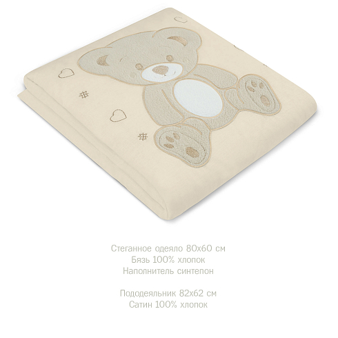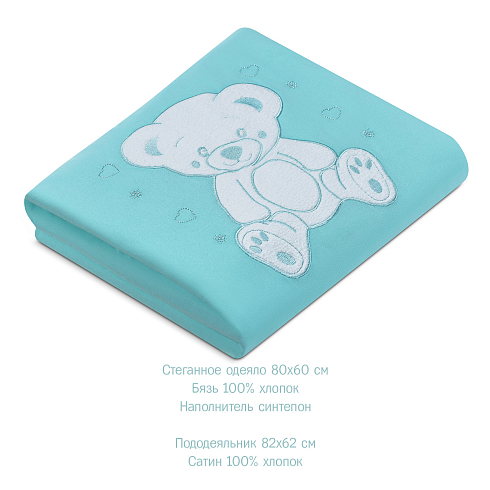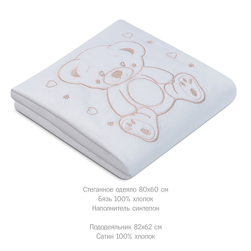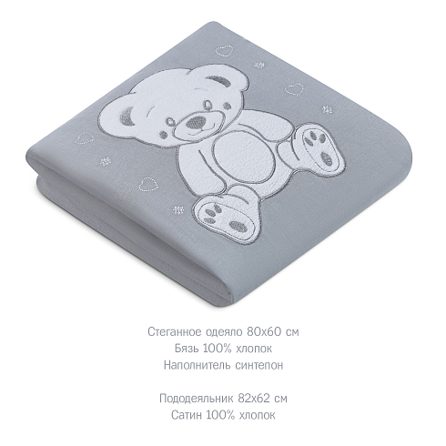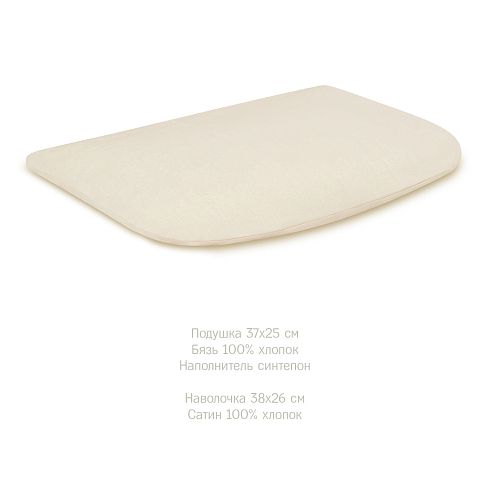 Ткань детского комплекта на 100% состоит из натурального хлопка: подушка и одеяло изготовлены из бязи с мягким наполнителем, все съемные элементы из износостойкого сатина. Важно, что эти легкие и дышащие материалы гипоаллергенны, и не провоцируют раздражения и опрелостей на коже малыша.