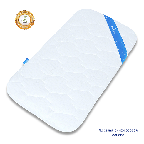 Матрас состоит из съемного чехла (трикотажное полотно), спандбонда и жесткой кокосовой основы. Эти легкие и дышащие материалы гипоаллергенны, и не провоцируют раздражения и опрелостей на коже младенца. Матрас хорошо вентилируется и быстро просыхает. Основа матраса – это плита из би-кокоса высокой плотности и толщиной 2 см. Такая толщина обеспечивает хороший тепло- и воздухообмен, а жесткость основы создаёт оптимальные условия для правильного формирования позвоночника у новорожденных.