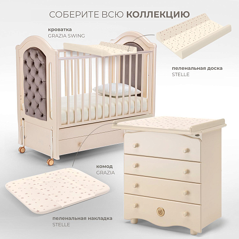 Покупатели могут выбрать матрасик-накладку белого или бежевого цвета. Изделия украшены рисунком, который соответствует одной из коллекций детской мебели Nuovita. Любой из очаровательных принтов, которые являются фирменным знаком бренда, понравится малышу и поможет создать в детской радостное настроение.