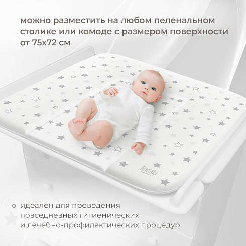 Матрасик для пеленания от итальянского бренда Nuovita (Нуовита) удобен для использования с любым пеленальным столиком или комодом. Матрасиком-накладкой можно пользоваться с первых дней жизни ребенка, максимально рекомендуемый возраст — 1 год.