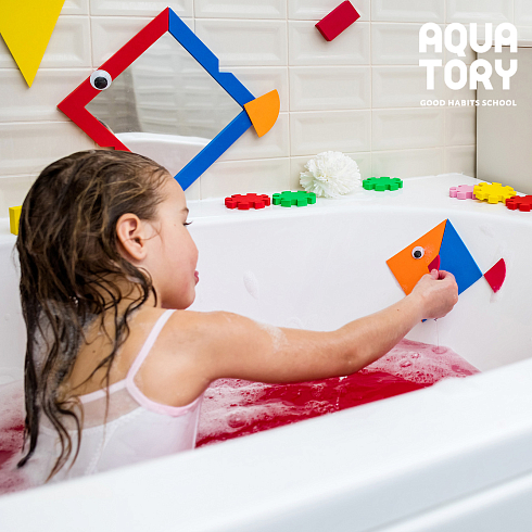 Благодаря материалу EVA головоломка легко крепится к любой ровной поверхности в ванной, достаточно просто её намочить: "Намочи и приклей!"