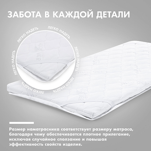 Хорошая воздухопроницаемость полотна не создает «парникового эффекта» и идеально поддерживает естественную терморегуляцию тела ребенка. Влагостойкая мембрана полностью защищает от протекания и ускоряет срок высыхания наматрасника. Антибактериальная пропитка ткани снижает риск появления неприятного запаха и является гипоаллергенной, что позволяет применять изделие для всех без исключения детей. Края наматрасника имеют аккуратную обработку. Фиксирующие резинки пришиты с применением специальных трикотажных швов.