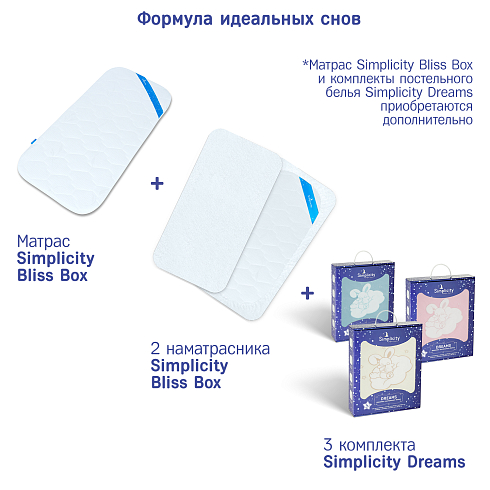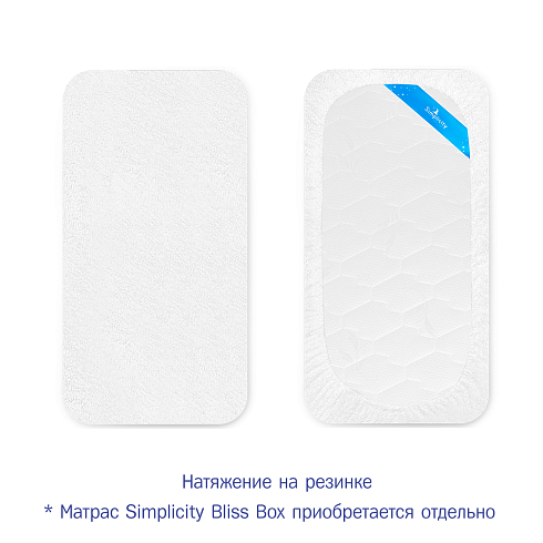 Уход за наматрасником не требует от мам больших усилий, он надежно и быстро фиксируется на матрасе с помощью резинки, натянутой по периметру, образуя ровную поверхность без складок. Наматрасник Simplicity Bliss Box надолго сохранит качества и внешний вид матраса, а качественные и безопасные материалы станут залогом будущего здоровья малыша.