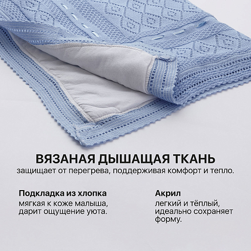Этот детский плед — универсальный вариант, который подойдёт для кроватки, коляски и автокресла. Нежные оттенки COPERBINI Gioco станут красивым дополнением к любому интерьеру детской комнаты и будут гармонично сочетаться с любым постельным бельём. Плед детский вязаный выполнен в классическом дизайне с уникальным узором, который добавляет ему стиль и уют.