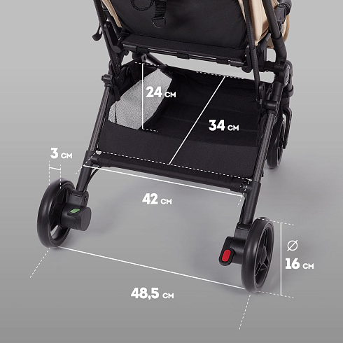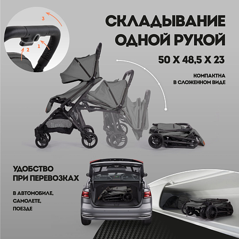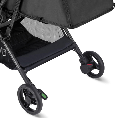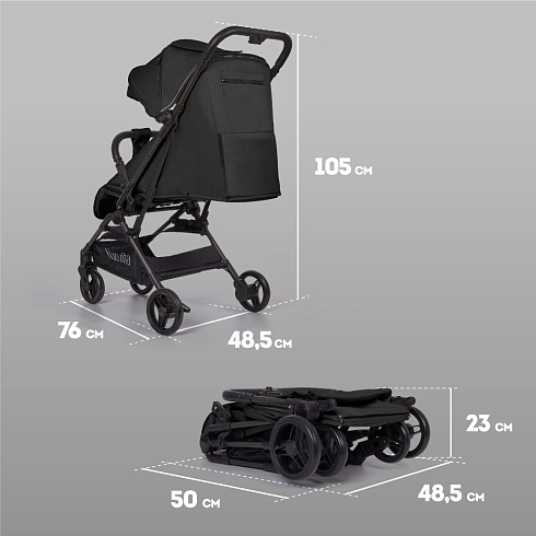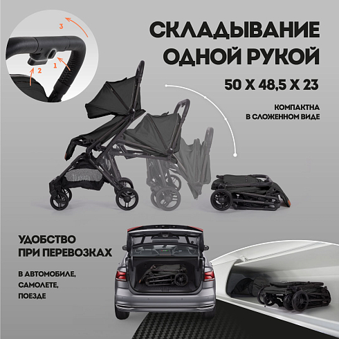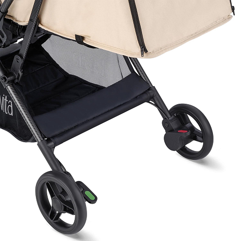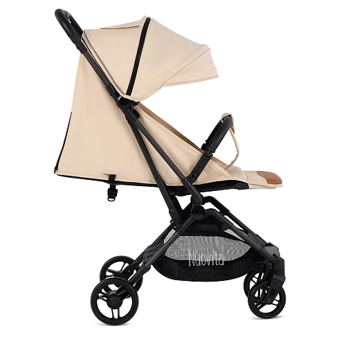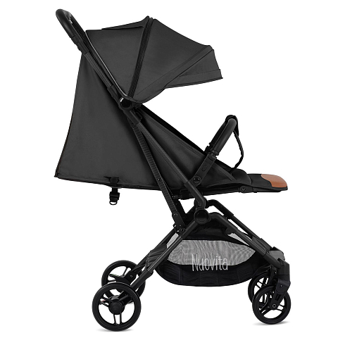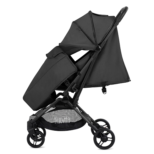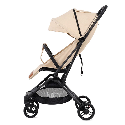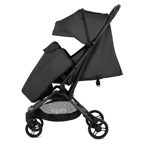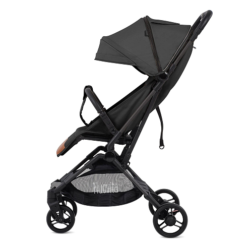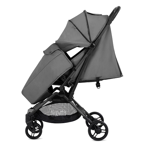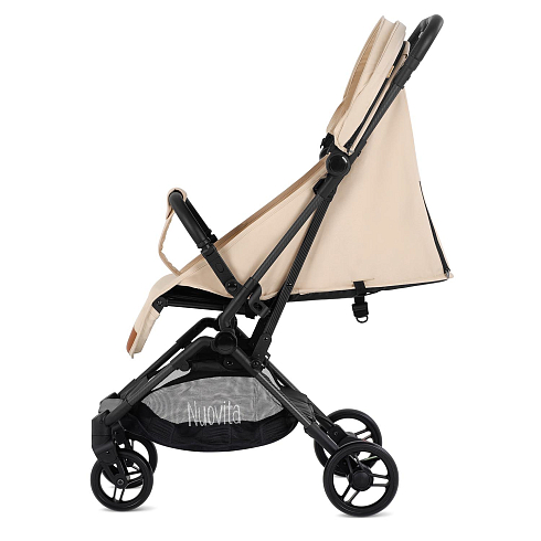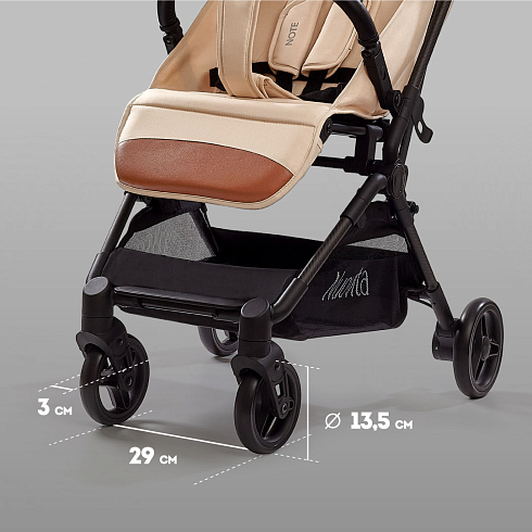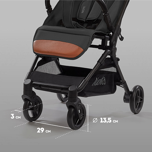 Легкая рама (вес коляски — всего 5,2 кг!) и складная конструкция позволяют брать её в машину: она без труда в сложенном виде поместится в багажник даже самого компактного автомобиля, а механизм складывания настолько понятен и прост, что её легко сложить в считанные секунды. Ширина колесной базы позволяет свободно заехать в лифт. Немаловажно, что спальное место для такой небольшой коляски является достаточно просторным — 29х74 см. Всё это делает модель Nuovita Note идеальной коляской для путешествий.