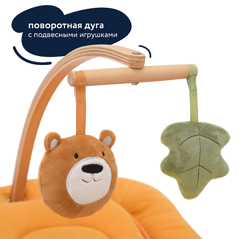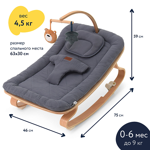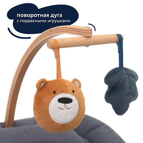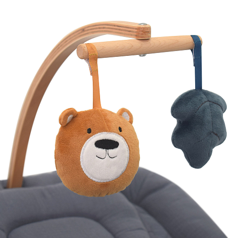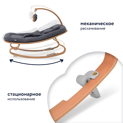 Одновременно в кресле-шезлонге для новорожденных INIZIO I1 есть все необходимое, чтобы обеспечить ребенку полноценное развитие: в комплектацию входит поворотная дуга с подвесными игрушками, за которыми малыш может наблюдать, тренируя зрение, и к которым он станет тянуться, тренируя мышцы ручек, координацию и хватательный рефлекс. При этом деревянные поверхности и хлопковая материя, до которых ребенок будет дотрагиваться, обеспечат условия для развития его тактильных ощущений и мелкой моторики.