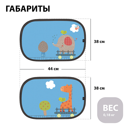 Солнцезащитные шторки Tenda Giraffe\Elephant, 2 шт в наборе