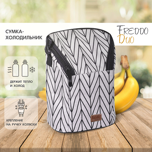 Практичная и простая Сумка-холодильник Freddo Duo. Вы можете прикрепить её на коляску или носить в руках. Изолированная подкладка из алюминиевой фольги сохранит температуру молока или других напитков в бутылке.